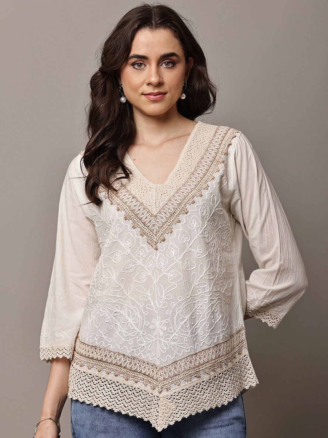 69% OFF: ZHOF ZHOF Embellished Embroidered Bohemian Cotton Top | ShadowMerchant
