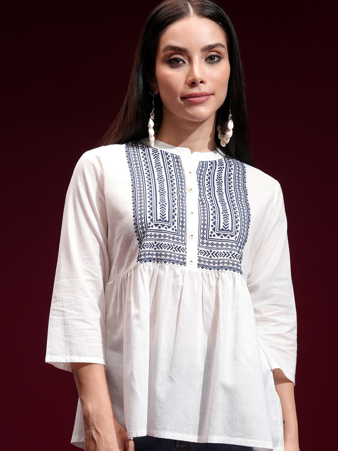 65% OFF: Vishudh Vishudh Off White & Blue Geometric Printed Mandarin | ShadowMerchant