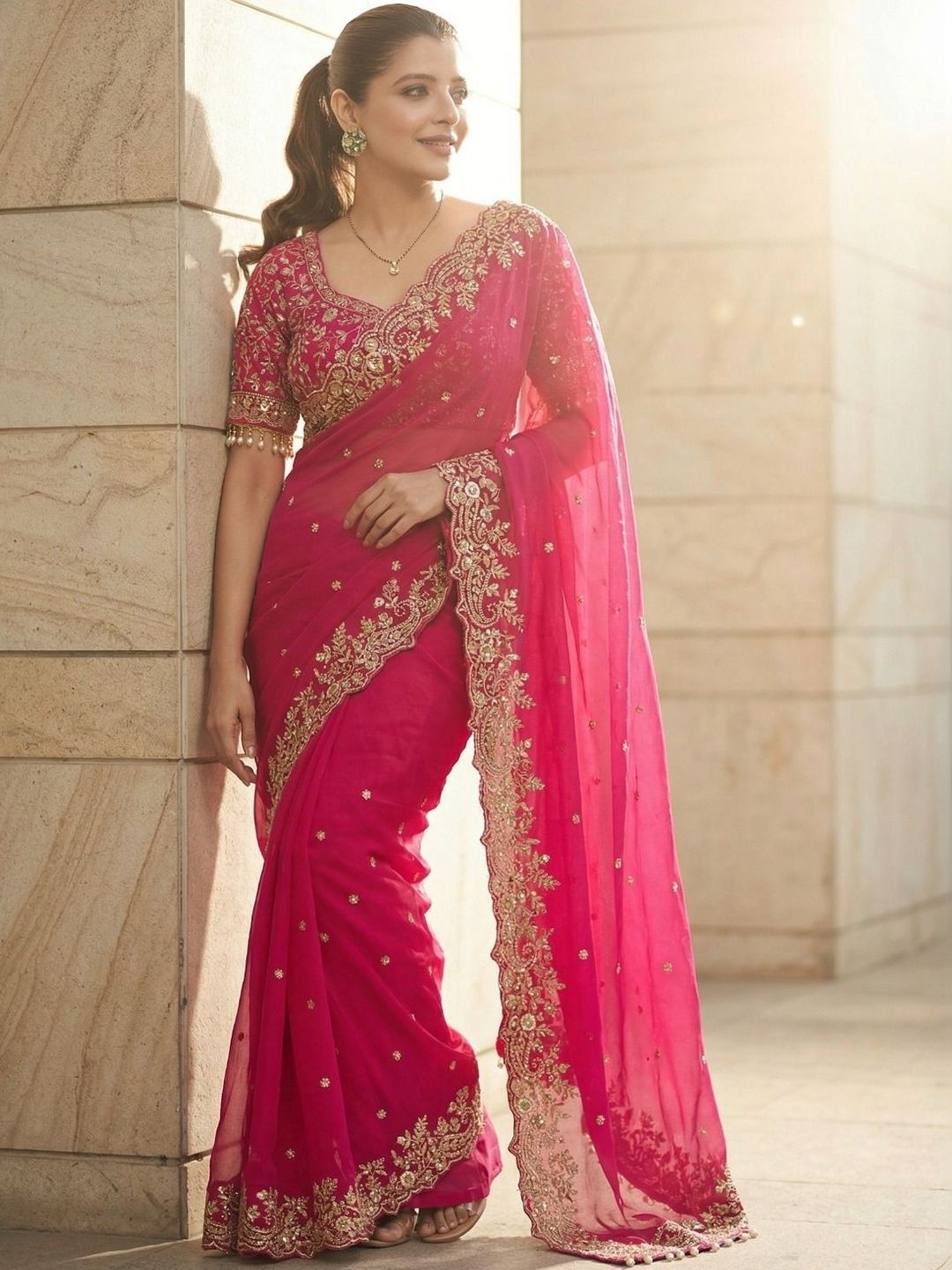 84% OFF: Kalista Kalista Ethnic Motifs Embroidered Satin Saree | ShadowMerchant