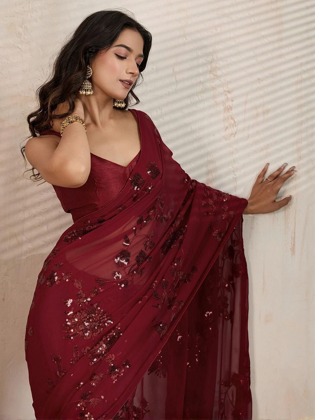73% OFF: FashionsEye FashionsEye Floral Embroidered Pure Georgette Sa | ShadowMerchant